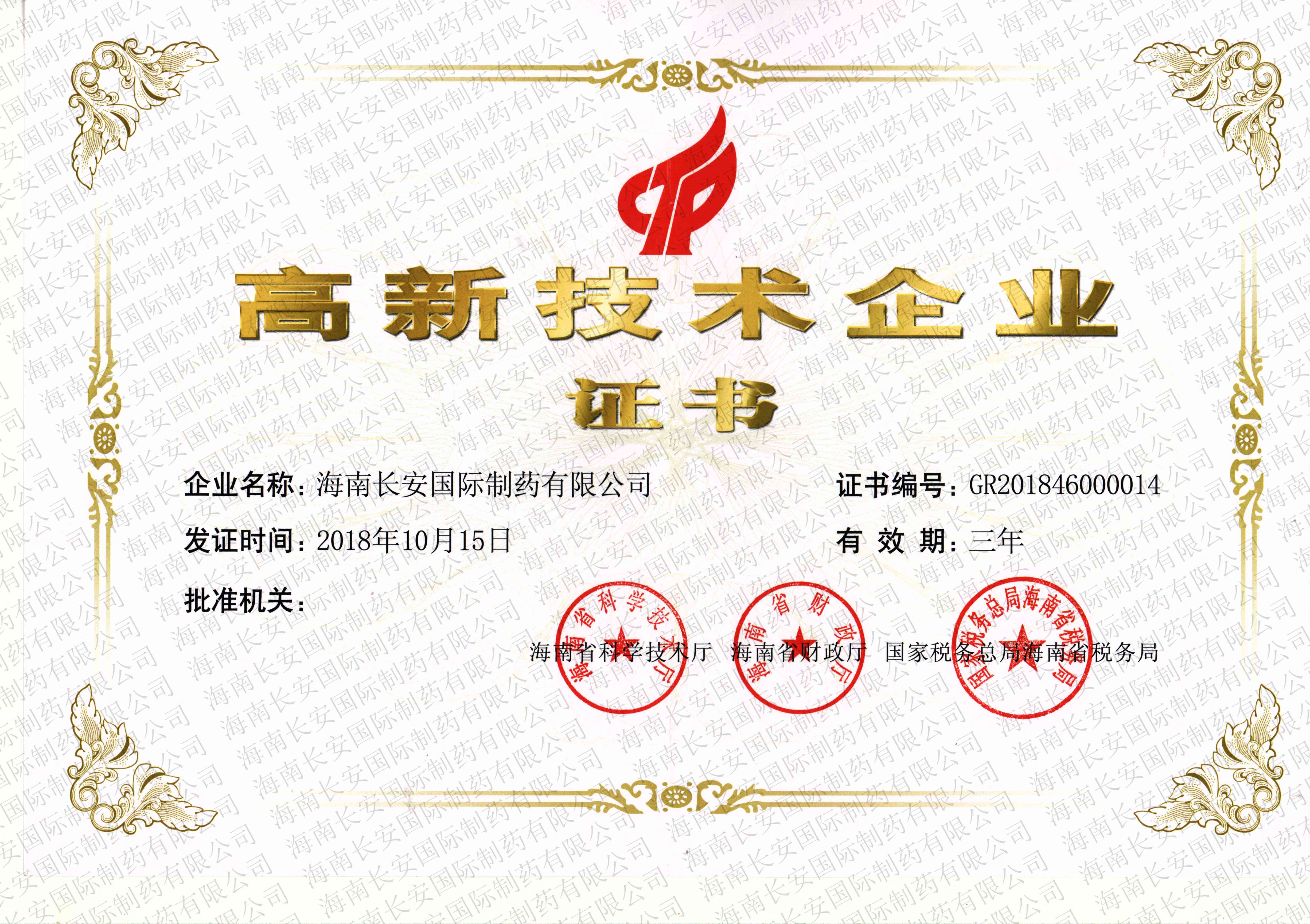 高新技術(shù)企業(yè)證書