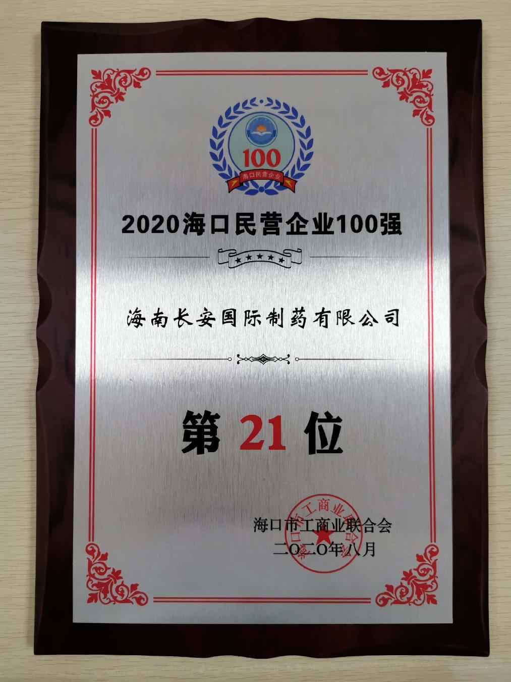 2020海口民營企業(yè)100強(qiáng)