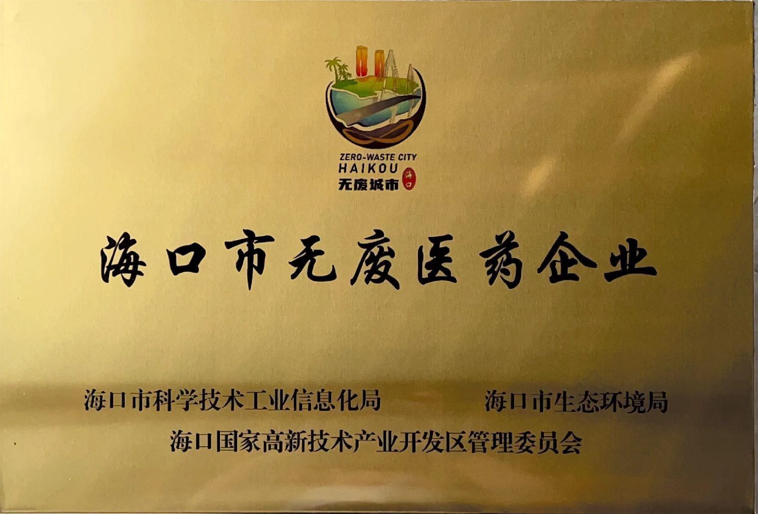 2023年榮獲“無廢醫(yī)藥企業(yè)”稱號