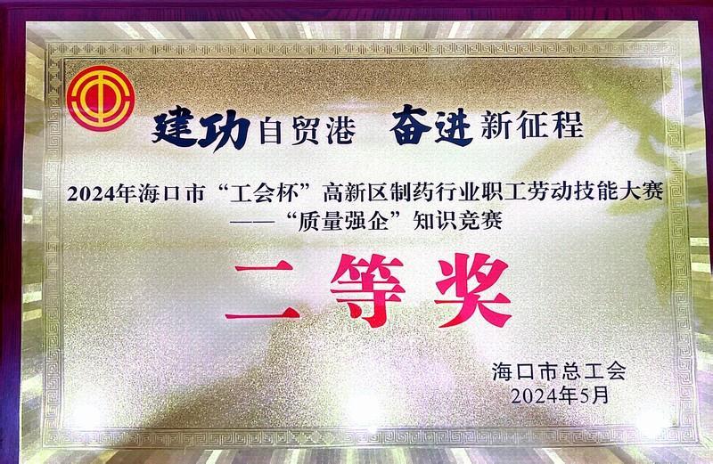 2024年海口市“工會杯”高新區(qū)制藥行業(yè)職工勞動技能大賽活動“質(zhì)量強(qiáng)企”知識競賽--二等獎