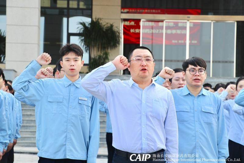 活動第一項是升旗儀式,國旗、益佰旗、廠旗在嘹亮的國歌聲中緩緩升起,在朝陽中迎風飄揚。莊嚴的升旗儀式和員工宣誓拉開了軍訓的序幕。