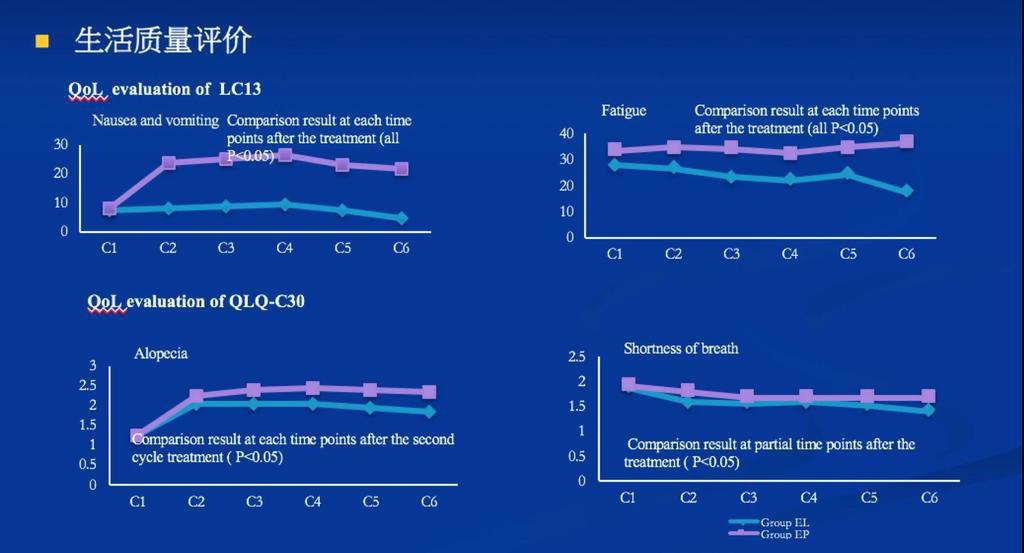 2、洛鉑+依托泊苷方案安全性和生活質(zhì)量顯著優(yōu)于順鉑+依托泊苷方案。